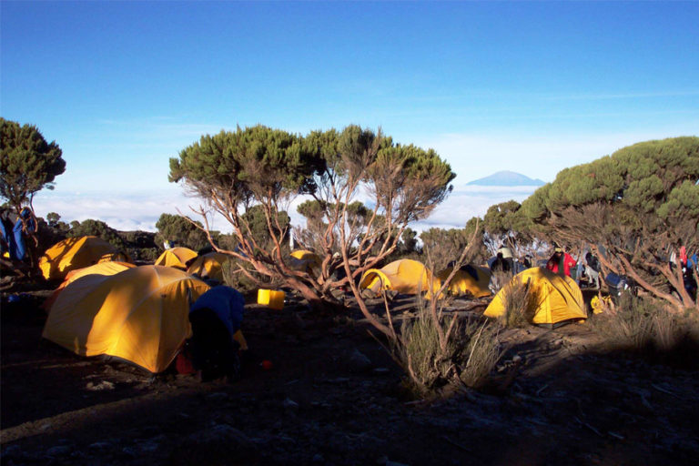 Once the formalities have been completed and the hiking team is ready, we will then drive to Momella Gate. We will start hiking through the grasslands, and you will have a have a chance to see wonderful wildlife such as giraffes, buffalos and much more. We will enter the acacia forest in which we will follow the Southern route and hike for about a good 2 hours, then reach Maio Falls, the scenery is amazing and is a perfect place for a picnic and a short break. We will continue hiking and reach the famous “Arched Fig Tree”, and then hike gain for another 2 hours where we will reach the Miriakamba Hut, where we will stop for dinner and an overnight stay.