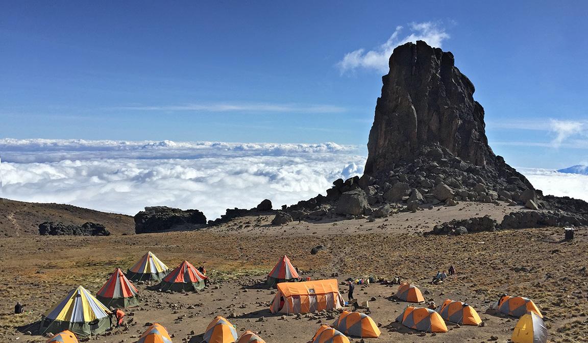 After breakfast, we will leave Shira Plateau and enter the semi-desert and rocky landscape of Kilimanjaro land. It will take almost 5 hours in total to reach the Kibo peak. We will continue trekking up, it will be tough and you will feel exhausted but you will be able to rest along the way. As you hike up you will be able to view the Lava Tower also known as the “Shark’s Tooth” that stands 4630 meters above sea level. At this point, you will start to feel the lower oxygen level and will spend about two hours here in order to adapt to the altitude. We will stop for lunch, and then descend from Lava Tower (4630m) to the Barranco Campsite (3950m). You will pass through Barranco Valley and see the famous Barranco Wall, impressive in its massive size and steepness. You will arrive at Barranco Camp, have some rest, dinner and an overnight stay.